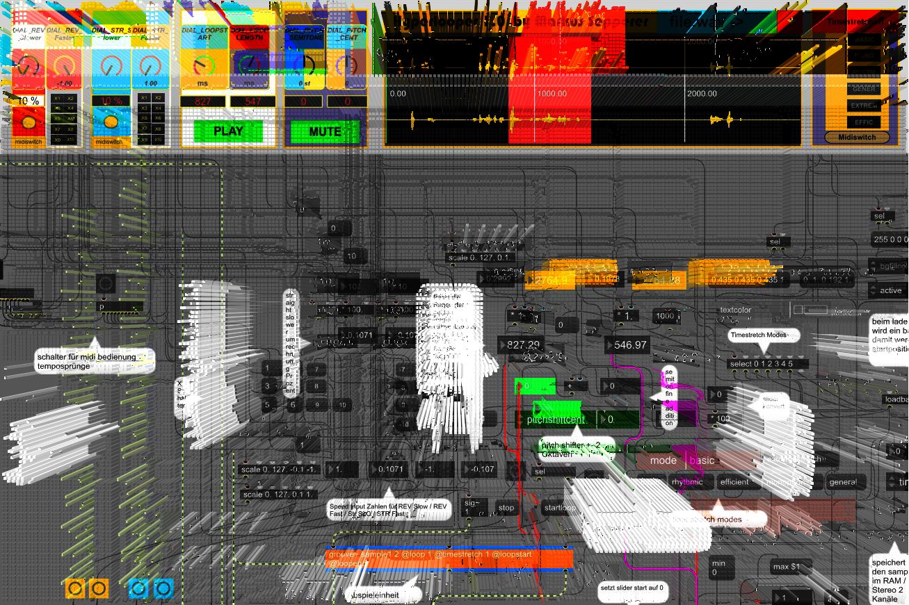 Hyperloops unfolds primarily from loops ranging from approximately 40 to 300 milliseconds at its core. The source material consists of recordings of air slap and key noises from inside the Oboe and English horn. The work is fundamentally composed of linearly unfolding processes shaped by loop lengths and positions within the used samples. Multiphonic textures form a central axis of reference, serving as the pivot point for continuous rotation and granular repetition.